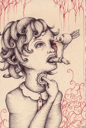 BtZ: I'm a little surprised to hear that about your family. Some of my favorite pieces of yours have been the portraits of family members, especially anything involving "Grandmas". It was in an older collection, but they were presented pretty nightmarishly. Is there any truth to that? Or has portraying them that way helped learn those lessons?