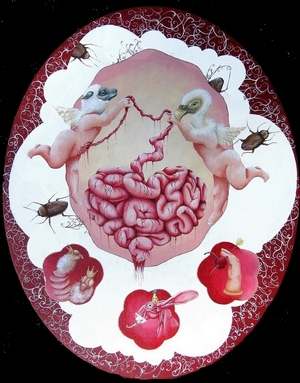 BtZ: Most of your work is so wonderfully feminine, with a lot of other things fueling the actual content of the painting. Over the years we've seen the rage in the early works slowly grow into something much more accepting, from a certain point of view. The new works are still pretty terrifying images, but they're graceful somehow, almost light hearted in their ferocity. Could you talk about that?