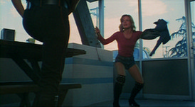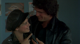Within seconds, Patch is on the ground with her own switchblade - a representation of her identity - taken from her. The group is now intrigued by Maggie (Joanne Nail) whose ferocity is equaled by her beauty. None more than the leader of the Silver Daggers. Dominic's theory on love is born of the Howard Roark/Behind the Green Door School of romance. To pitch woo is to force yourself atop the girl of your want. Why does Maggie, who has established herself to be a woman of strength, allow such a savage brute to befoul her? In literature, as in life, as in this movie, men make women stupid. The same way Dominic is able to use her for his seminal release is the same way the rational woman of Hemmingway’s Hills Like White Elephants is talked into terminating her pregnancy. Men traditionally write women as creatures who succumb rather than fight. It's this yield to an erroneous, ill-conceived, gender norm that works as the movie’s major fault. It’s the sour note in this aria. Otherwise, Switchblade Sisters could have been the Patti Smith of 70’s cinema. (Though, it should be admitted that this author believes the antiquated notion that this planet would be the most tranquil of places were the sole inhabitants women. If it were occupied only by men, we would spend most of the day masturbating into fire.)