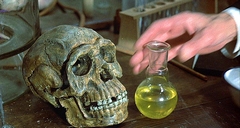 Emmanuel sets to cleaning the skeleton and washes one of the fingers with water. Oddly it begins to grow flesh upon that digit right before him. Thinking quickly he snaps the finger off before the flesh can "creep" it's way to the rest of the skeleton. From that pulpy finger he extracts blood and discovers "black blood cells" that seem to devour the red blood cells. He deduces that this is the very manifestation of evil itself.