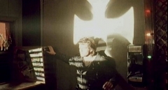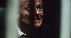 We discover that Grubeck has finally achieved his prince of darkness status when he is able to leave his own body from the jail cell through astral projection to kill more people. This scene is truly funny. Watching Assa flop around on the bed like a demonic fish out of water is priceless. Nobody chews the scenery like this guy. He also uses his new powers to visit Robin in the middle of the night and watch her while he sleeps. Poor guy, his now rotting face, which looks like a pound of ground round, is keeping him from becoming the man of Robin's dreams. Morphing into an evil figure can have its drawbacks though.