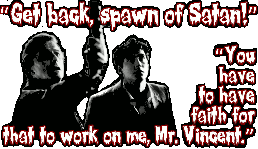 What follows is a modernization of the fable The Boy Who Cried Wolf. Charlie tries to get his mother, his friends, even the cops to look into Jerry’s nocturnal activities, only to be repelled by a solid alibi and a very charismatic vampire’s helper (homunculus!). Soon he’s a laughing stock at home and at school, the only witness to a grisly string of murders, stricken dumb by his own over-active imagination. Charlie’s investigations only serve to piss the vampire off, and soon he realized he’s put not only himself, but also his disbelieving friends and family, in mortal danger.