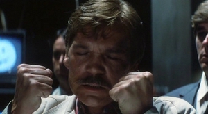 Halloween III: Season of the Witch centers around a line of Silver Shamrock Halloween masks. Already a sensation on store shelves, the manufacturer has a national ad campaign reminding children that on Halloween night, they’re to put on their masks and gather around the TV to watch a special broadcast. We follow a man who is sent to find out more about this mysterious company. He might have been a journalist. Or possibly a detective. I don’t remember and it really doesn’t matter; we just need his eyes to see the inner-workings of this company. In a movie, every scene should give us something. Be it information, or some ordeal/conflict that engrosses us. H3 was a little light on this. There are too many moments where our hero just gives a quizzical look. (Not unlike Se7en, or Donnie Darko. Two movies in which our lead(s) just walk around puzzled by everything until the story happens to bump into them.) I could never put my finger on it, but there’s something in H3 that feels like the production was fueled by cocaine. I don’t mean the trademark Dennis Hopper yelling and biting coke-binge. The actors seem to have been up for three-days and finally dragged onto the set. Anyone familiar with porn from the same era knows exactly what I’m talking about.