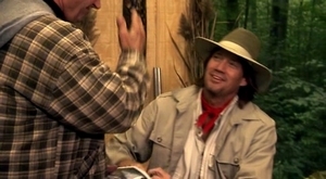 The movie just gets clunky from there. Kevin Sorbo’s character (complete with font stolen from Indiana Jones; check out his posters at the gun shop) steps up to deliver a ham-fisted performance, Nina arms herself for the final battle with a crossbow that launches silverware, and the wolf…well, I’ve already told you about the wolf, who not only looks crappy in wolf form, but I guess he also loses all his supernatural powers once he transforms.