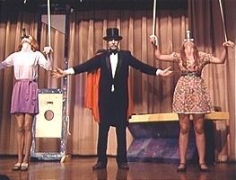 For the uninitiated, here’s a breakdown: WOG is about a reporter with her own Good Morning America-ish talk show who decides to go looking for hot new acts for her variety section. She comes across magician Montag the Magnificent working in some back alley club, and is immediately fascinated by his act. His act is this: get up on stage, ramble on and on and on for about ten minutes about the unseen world, then brutally kill a volunteer from the audience. Everyone in the audience is repulsed by the show, but can’t leave their seats… but all of the sudden, Voila!, the show is done and the volunteer is actually ok and free to go. The end. Get used to this format, you’re going to see it four or five times during the film.