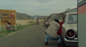 The film stars Franco Nero (DJANGO) and Corrine Clery (THE DEVIL'S HONEY) as Walter and Eve Mancini, a married couple that have grown tired of each other but there's still a good amount of co-dependency to keep them together. They are on a hunting trip and pick up a hitchhiker along the way named, Adam Konitz, played by Hess. Konitz turns out to be an escapee from a mental institute with a cache case of 2 million dollars that he stole with 3 other escapees. Everything is fine until Adam makes a verbal sexual advance towards Eve causing Walter and Adam get into a fistfight on the side of the road. Some fisticuffs go on and then Adam pulls out a gun. Now Adam is in control and Walter and Eve are his prisoners. What follows is a psychological hell ride from Northern California to Mexico.