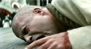 Once Sister Jeanne finds out that Grandier has married, she really flips out and is so guilt stricken by her fantasies she claims she has been possessed by Grandier. Once the Baron finds out this news, he sends in a priest by the name of Father Barre (Michael Gothard in a standout performance), an exorcist whose evilness is shrouded by his man of the cloth image. He is a witch hunter that always gets his man. Though in this case, Grandier is set up as an incubus type demon, possessing poor nuns with thoughts of sexual lusts. Father Barre storms the convent and conducts a horrendous exorcism on Sister Jeanne (it makes Regan's exorcism in THE EXORCIST look like kids stuff). Enemas and ipecacs are forced on to the nun and her vomit and stools are searched for semen - all in front of a crowd of onlookers as well. Barre concludes that Sister Jeanne is in fact possessed by Grandier and convinces all the nuns to 'act' possessed by Grandier or face execution.