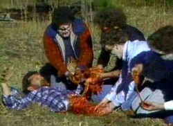 Straight out of the world of Troma comes--REDNECK ZOMBIES, a horror/comedy that delivers on the gore, but no so much on the laughs. There are a few laughable moments sure, but not as many as the makers of the film probably think there is. REDNECK ZOMBIES doesn't really bring anything new to the table as far as zombie flicks go--a toxic chemical turns locals into zombies, there's an outbreak, there's a group of people fighting for survival, there's a Lord of the Flies moment, chaos ensues, guts are munched, one survivor, the end--but damn if I couldn't keep my eyes off of it. The film is one of the most schizophrenic films I've ever seen, one moment it's a screwball comedy and the next it's a really dark horror film and it changes from one scene to the next. What I think this stems from is that the makers of the film didn’t having a clue of what they were doing. The golden rule of writing is "write what you know", these guys sure as hell didn't know much about Southerners. Basically the "rednecks" in the film are just stereotypes recycled from He-Haw and The Beverly Hillbillies--not that I'm defending rednecks (far from it), but they're not all tobacco chewing, overall wearing, shoeless, moonshine drinkers, but I suppose that image is "funny" so they rolled with it. I did like the fact that all the non-rednecks in the cast were pure 80's (when the film was made) and the rednecks seemed to be lost in a time warp as they come off as dust-bowl era hillbillies.