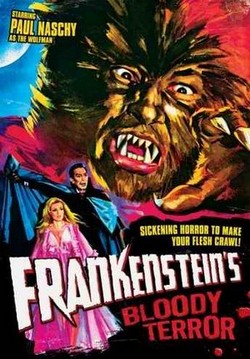 In El Marca del Hombre Lobo [1968], better known to English speaking audiences as Frankenstein’s Bloody Terror (AKA Hell’s Creatures). Mary Shelley’s creation is nowhere to be found – American producer Sam Sherman had promised his distributors a Frankenstein picture and wasn’t able to deliver. One cheesy animated intro with a voiceover hastily explaining how the blood of the Frankenstein line had been tainted by a werewolf later and hey presto! One Frankenstein movie!