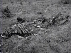When they get there, Andy shows them what happened to the cattle, which have been stripped to the bone with no blood or guts. Even stranger is a weird white pool of thick substance close by. Andy pushes for the sheriff to do something, but he just insists to get all the live stock together and keep guard in the night.