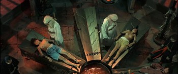 It may meander a bit along the way, with a little too much superfluous exposition and backstory - which Cushing, to his eternal credit, makes credible with ease - but plenty of cans of whoop-ass get opened along the way, particularly in the final battle sequence. I’ve read reviews that have criticised the direction, saying Roy Ward Baker had no idea how to film martial arts, but I must disagree. Look at the credits and you’ll see the crew was proportionately more Chinese than British; the simple visual style is reminiscent of the martial arts films of the era and captures the action just fine, even with the odd glimpse of Cushing or Julie Ege standing ineffectually in the background and Robin Stewart feebly attempting to get in on the action. In any case, the fight sequences were almost certainly the handiwork of uncredited co-director Chang Cheh, the man responsible for such Shaw movies as One-Armed Swordsman. There’s plenty of swooping, leap-frogging, high-kicking and all that jazz. It’s not quite Drunken Master, but it gets the job done.
