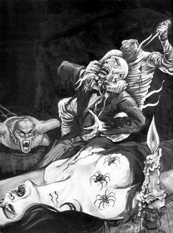 Eerie Publications horror comics mixed reprints of cheap imitators of E.C. Comics from the 1950s with new stories designed to deliver as much gore and sleaze as possible. The reprints were often touched up to either accentuate cleavage or amp up the violence. Very few of the stories made much sense or were anything more than an excuse to depict beheadings, dismemberments, disembowelments, eye gouging, throat slashing, flesh melting, or torture.