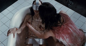 Still, while it may wind up being a film that’s easy to dislike, Martyrs is also a film that it’s difficult not to feel some admiration for. It’s undeniably a well made, well designed film, beautifully photographed and powerfully performed. And, considering how often we horror fans decry Hollywood’s inventiveness deficit, you kind of have to respect any film or filmmaker making a conscious effort to subvert convention. There have been plenty of horror movies in recent years that have taken a similar approach, taking what initially appears a fairly standard horror down an abstract road, and it has paid off: take Neil Marshall’s masterpiece The Descent, and Aja’s Haute Tension. Having said that, some of the conventions of storytelling persist for good reason; i.e. they actually work. As I’ve already intimated, unusual doesn’t automatically equal good. Martyrs is indeed a challenging film in its unapologetic displays of torture, and its refusal to provide easy answers, and there’s a lot to be said for forcing the viewer to do a bit of work and come to their own conclusions. However, sometimes the conclusion reached may well be, “that’s a load of bollocks.” (See also All the Boys Love Mandy Lane.)