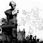Neil Gaiman writes for children but there is nothing condescending about it. The verbage, while pared down from overly sentimental meanderings about life and death, is clever and appealing despite their macabre subject matter. Bod, the young protagonist, learns his letters from the names on tombstones. The story begins with commonplace horror story keynotes, a knife, a dark hearted murderer and a family's massacre. The only one who survives this slaughter, miraculously, is a toddler barely able to walk or talk. Still he makes his way from his crib unaware that his parents and only sister lay dead and manages to make it up the hill, through the gates and into the slumbering grounds of a graveyard. The killer pursues, committed to a secret mission, but he is foiled by ghosts, specifically the childless-in-life couple, Mr. and Mrs. Owens. Mrs. Owens clasps the baby to her and vows to keep him safe despite the protestations of some of the other ghosts who have no wish to interact with the living world. But how to keep the babe fed and clothed? Silas, a creature who is not yet dead, nor alive, steps in to help, offering to become the baby's guardian till he is of age.