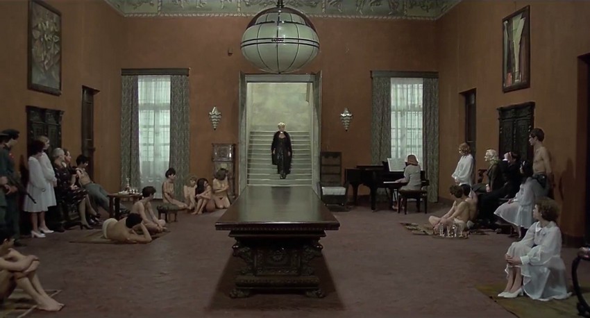 “Salo” is an adaptation of a novel by the Marquis de Sade, a great starting point for depravity. During World War 2, four fascist Italian noblemen and their horrible wives kidnap eighteen young boys and girls and drag them off to a remote chateau as objects of degenerate experimentation and entertainment. They progress from rape and humiliation to forced shit eating, piss drinking, and eventually torture and execution. Along the way, the noblemen stage elaborate mock wedding ceremonies, spout philosophy, and cross dress - all to ensure that highbrow audience members are clear that this is some socially relevant shit they are watching.