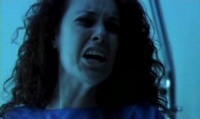 Jenny takes this as a moment to make an escape. Now, let's stop here and consider for a moment what's happened. Heiter has left her alone, there is a gaping hole in the window she can escape out of. You'd figure logic would bring you to get the heck out of there and find help. But no, she goes downstairs to pull Lindsay out. Now, it's all great that you are loyal to your friend and all, but carrying her unconscious body out with you is just slowing you down. If she had half a brain she would have made a break for it and come back with the police to save her friend. Ah, but we have to follow the clichés now don't we? So of course, once she struggles to drag Lindsay outside she is tagged by a dart fired by Dr. Heiter and she is once more made his prisoner. Some rescue.