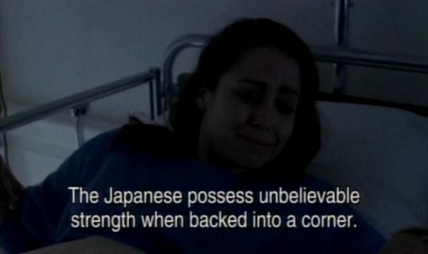So he has the Japanese guy strapped into the bed freed up by the trucker, and this guy is pissed when he comes around. He starts screaming stuff in Japanese (and you better believe they provided us with subtitles) and he has some of the more ridiculous lines in the whole film. While struggling to get free from his restraints he even says "Japanese possess unbelievable strength when backed into a corner." You can bet that theory didn't pan out to well.