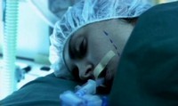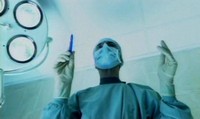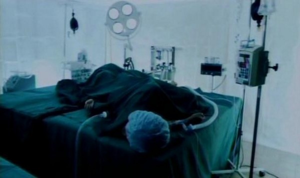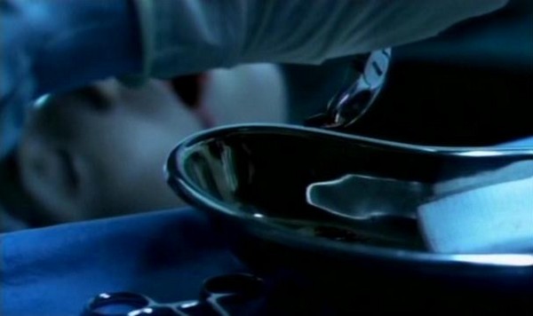 So you don't see the whole surgery, obviously, but they show you enough to make you feel slightly uncomfortable. There is a shot of Dr. Heiter pullig out teeth, cutting tendons, cutting the skin around the ass, sewing skin to a face. All this is spliced together with shots of Heiter taking breaks to relax, and full on shot of the progress of his creation.