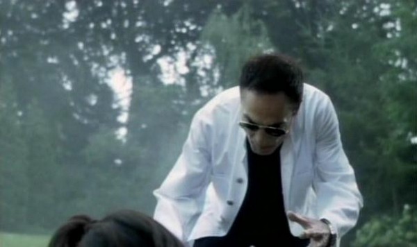 The doctor busts in with the scalpel in his hands, and Katsuro drops the lamp and opts to try and defend himself with a sliver of glass. Wait, what? You're telling me that you're giving up the big bludgeoning object for a tiny sharp object? What the hell is wrong with the people in this movie? That's like being up against an elephant and trading in your rifle for a BB Gun. Then, right out of the blue, Katsuo says: