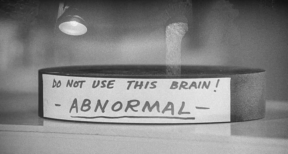 Back at the lab, Frederic sends Eyegore on a mission to collect the brain of Hans Delbrook at the brain depository. Once inside, he finds it, but due to being scared by his reflection and lightning, drops it and destroys the brain. He then takes what he thinks is the next best thing, a brain by Abby Normal (although it's really an Abnormal one with warning's not to use).