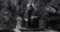 The next day, the creature comes across a little girl throwing flowers down a well. She offers some to it and he starts to play as well. Meanwhile, her parents are preparing to board up the house with news that the creature might be out there, but panic as they relies she's missing. Back outside, her and the creature are about to play on the teeter totter when his weight launches her into her room and bed, just before her parents go in and find her.