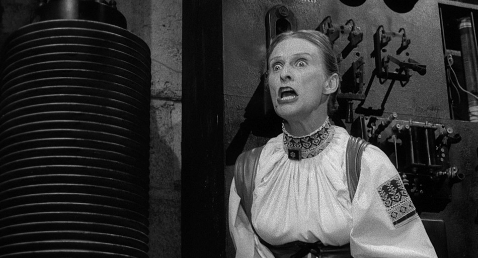 Down below, Frau Blücher has arrived and discovers the creature. Frederic, Inga and Eyegore arrive and find her releasing it. Before it can go violent though, she calms it with her violin playing. Frederic relies that Frau Blücher set it up; she lured them and had them find the book in order to complete his grandfather's work, as she was his lover.
