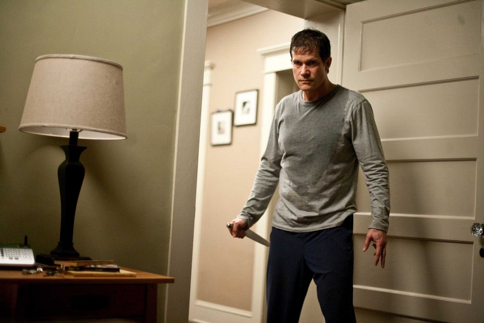 "The Stepfather" (2009) is a remake of the 1987 thriller starring Terry O'Quinn (from the "Lost" TV series). While it is a stretch -- make that a very long stretch -- to call the 2009 remake a horror film, it does have some intense scenes and is about a supposedly normal guy who just wants to have a perfect family. His past history though includes going from place to place seeking that perfect family and if they don't live up to his standards, he kills them.