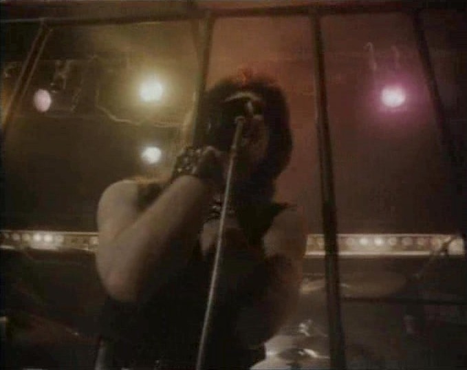 This horrible musical rendition is also a segway to more horrid music: The rock band that are the stars of this movie. The interesting thing I must point out is that they never mention the name of the band, nor do they properly introduce the band members. So there's the band which features the lead singer and lead guitarist Jesse (E.J. Cruse), drummer Bobby (Sam Mann), and the nameless keyboard and bass players (played by Geno Andrews and Mick Manz) are playing a gig to an excited crowd. After the show their manager Ron (Ted Wells) tries to get them to get photos of them signing the breasts of their under aged fans(!) Jesse wants nothing of this and walks out and runs into a little girl named Cassie (Jennifer Coe) who warns him not to go to their next gig in her home town of Grand Guignol. Before our aloof hero can get any more out of her (like her name) she runs off.