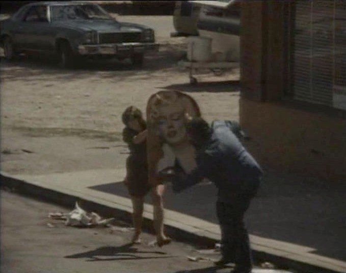 The film starts off with a vivacious blond (Lisa Toothman) hitch hiking on the side of the road. She is picked up by some guys and she convinces them to pull over on the side of the road so that they can go skinny dipping. As the blond (who we later learn is named Eva) splashes around with one of the guys, they're photographed by a man with his two midgets (one played by world famous midget actor Phil Fondacaro!). The woman proceeds to murder the two men and we find out that she is in league with the three perverts. After cutting off one of her victims hands, she holds it up and starts singing a horrid rendition of the Beatles "I Want to Hold Your Hand".