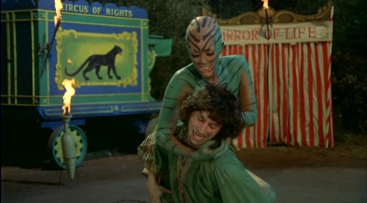 The Circus of Nights most alluring member, curly mop topped sleaze maestro Emil, shape shifts into a panther (my kind of guy!) and sets about seducing the local vir(yeah right)gins. Cue more deaths and carnage before a suitably bloody (for the period it was made, tame by modern standards) finale. Some of the local upstarts, I mean youths, and town elders, in the meantime had been doing a little detective work, alongside all the drama and come to the conclusion that The Circus of Night were in fact working for the deceased Count, to bring death and misery to those who struck him down (now I didn't see that one coming!). Cue pats on the backs all round, praise the lord for intelligent English people!