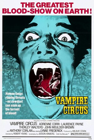 What better film to review for Halloween than a classic Hammer Horror? Infamous for being rather goddamn awful in true Hammer style, Vampire Circus is an endearing example of classic British horror at its... erm... worst. Set in a nineteenth century, European town - the inhabitants of which all speak with very distinct upper class English accents and sport fetching 1970's style haircuts. Vampire Circus's storyline is a bit of a twist on the atypical vampire genre. When said townsfolk slay an evil count that has been exacting a reign of terror over them, he swears to wreak a bloody revenge by in turn, killing all of their children.