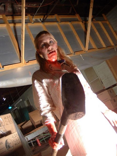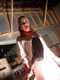 RB: Well, with AUNT ROSE and BARRICADE, I played victims and in 100 TEARS I was the perpetrator. I must say that I really do like doing the gory scenes because when I'm doing these scenes, it's actually a lot of fun. The preparation before and getting covered with goo, I enjoy that. It's actually hard for me to watch movies like this that I'm not in, but the films that I make are fun to do. Once I get into the zone where I have to be terrified, though, it is exhausting, because there are a lot of emotions that I have to go through.