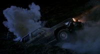 The 3 then run to a cliff drop off and stop just before. Looking back, they see the monster heading straight for them. Val then throws the last burning bomb which he intentionally throws behind it. As it explodes, it makes the monster run even faster. As both Rhonda and Earl flee, Val waits until it's nearly at him, and then jumps over it. The monster then shoots off the cliff and falls to its gory death. Up top, Val says he suddenly remembered from earlier, stampede. The 3 then laugh while the others celebrate. Back in town, Val and Earl are fixing the truck discussing how to make there fame with this. Rhonda then gets a picture of the 2 together and says goodbye. Earl then pressures Val and Val finally caves. Going to her as she leaves, he finally kisses her.