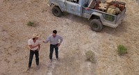 Driving back to town, they encounter a 2 construction workers on the road jack hammering. They give them a warning, but they don't believe them. After the leave and they continue to jackhammer, it suddenly hits something and blood pours out, a roaring heard. The Jackhammer then speeds away from his grasp and the cord pulls him along with it, his foot entangled. The other one follows but suddenly is buried from a landslide. In town, Val and Earl are questioned by Melvin, Walter, Miguel and Nester about Edgar and Fred as they try to make a call, but find the phone line is dead. They then leave as to get help from Bixby. Along the way though, they find the road collapsed and path blocked. At first they call out to the construction workers, but then find a bloody helmet. Now panicking, both jump into the truck and try to flee, but Val backs the truck up against the bank. When he tries to go forward, the truck stalls, taking several tries until they leave.