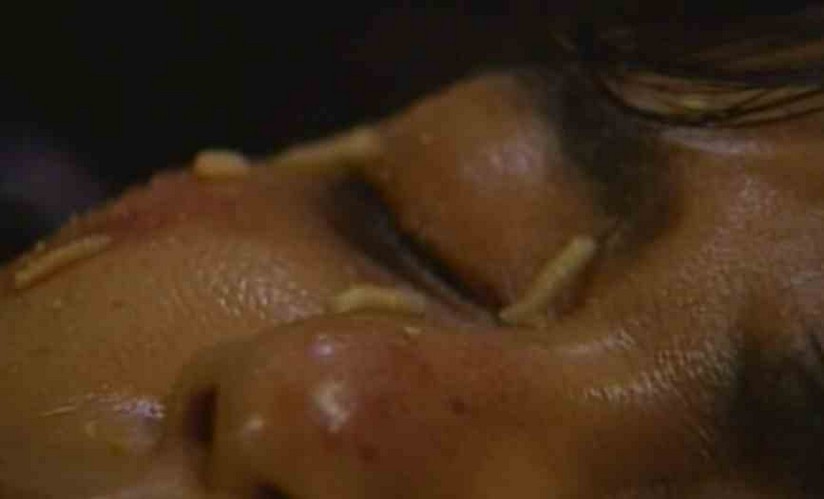 Guinea Pig 2: Flowers of Flesh is the most notorious of the series, thanks to Charlie Sheen's crack addled reporting of it to the FBI as an actual snuff film. Flowers of Flesh portrays the kidnapping and live dismemberment of a young girl by a dude with bad teeth wearing a samurai helmet. After he's finished, he adds her pieces to his collection of decomposing body parts, some of which are in-artfully arranged in flower pots.