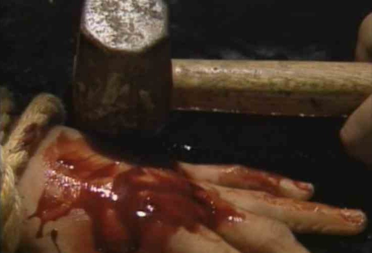The Devil's Experiment also depicts the kidnapping and abuse of a young Japanese woman, but rather than simply dismembering her, its protagonists subject her to a series of escalating tortures, climaxing with shoving a long needle through her eye.