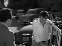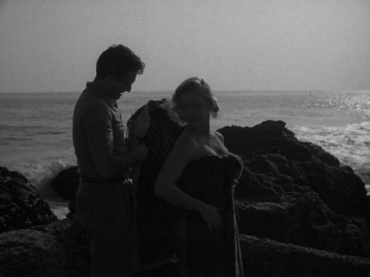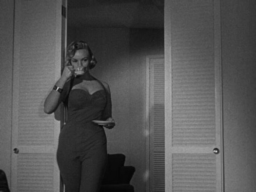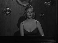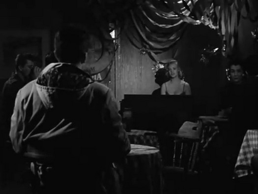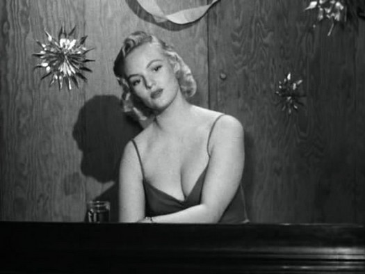 Trudy represents an interesting character study as well. A top-heavy blonde in a plunging neckline of the sort Hollywood was so enamored with during this period, I can't really call her a low-budget Marilyn Monroe. She's more on par with Mamie Van Doren in terms of thespianism, if not bustline. Something of a gangster's moll, she proves herself to be the proverbial "Hooker with a Heart of Gold" in her forgiveness of McKenna for ditching her on the beach and brings him into her apartment to recuperate. In doing so, she demonstrates the only real character development in the film.