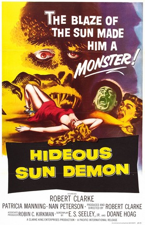 From that point on, radiation was one of the prime go-to means of bringing a monster to life on screen. If it wasn't from outer space, it's a fair bet it was spawned in the fires of atomic fission. Mutant monstrosities of every shape and size (usually very large) capered across the silver screen. One of the more interesting conceptually, if you ask me, is the titular horror of Robert Clarke's The Hideous Sun Demon.