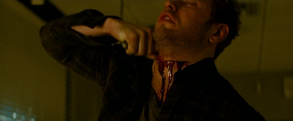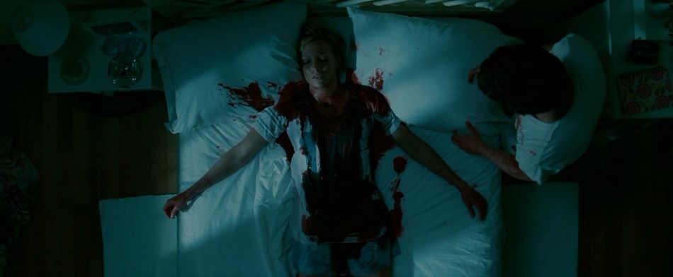 On fair Elm Street is where we lay our scene. Dean (Kellan Lutz) is being tormented by nightmares of a man burnt to the core. Wielding razor sharp knives as fingers, he's trying to kill him, and kill him he does. Well, at least he makes it out that Dean went off the deep end and slit his own throat in front of everyone, but hey it's just the opening scene. Next up is Kris (Katie Cassidy) who was in a conversation with Dean right up until he turned himself into a cadaver who begins to speak of her own nightmares, the same which Dean spoke of. When compared to the original, Kris' character is obviously based on Tina, the doomed ceiling bleeder that gave the first 'Nightmare' its charm - and yes Kris does fly up the walls and ceiling right before she is gutted by Krueger, so far the first stolen scene from its predecessor.