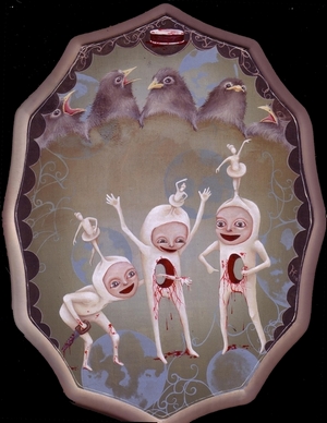 BtZ: Most of your work is so wonderfully feminine, with a lot of other things fueling the actual content of the painting. Over the years we've seen the rage in the early works slowly grow into something much more accepting, from a certain point of view. The new works are still pretty terrifying images, but they're graceful somehow, almost light hearted in their ferocity. Could you talk about that?
