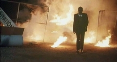 Eventually Spike realizes the only way to save Robin is to kill the spirit of Grubeck. He rides his hog into the night with Grubeck hot on his heels. Spike didn't have a mustache before but in this sequence he does! After he dies however he is suddenly sans the lip rug. I guess the filmmakers thought that the audience would be too tired to care at that point and they were right.