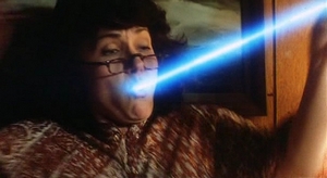 So what is the Special Broadcast that the kids can’t miss? We’re treated to a test-run conducted on a target family. Each mask is adorned with a Silver Shamrock logo. When the broadcast begins, the logo is activated – not unlike the Captain Power toys I could never afford as a kid . . . stupid lower middle-class family. Though the complete workings of the mask are obscured, we can gather that it liquefies the kids head, then shoots snakes out of the eye holes. The snakes then kill the rest of the family. As a student of economics, I must say that’s it’s a rather efficient model. The snakes offing the next-of-kin ensure maximum killing per household, something neo-classical economists are very stringent upon.