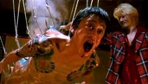 I wouldn't consider myself a die-hard feminist but I must admit by this point I was completely sick of the slapping, punching and raping of nearly every female character in these films. There is no empowerment of women whatsoever here. The only power they seem to be allowed to have is their sexuality and even that is used against them in revolting ways. There is one character in ICHI named Karen, she is The Boss's tough talking, no bullshit girl. It feels as if Miike will give this one some dignity, she won't be just another non-person whore for the male characters to play with. Yes, she is just as fucked up as all of them but she ends up meeting her maker in a most degrading way.