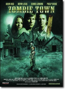 Zombie Town is available on DVD at any retailer that doesn’t suck too hard. The website for the film (Where you can get news, synopsis and trailers) is http://www.zapatosfilms.com/ .