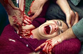I'm sure most of you reading this are familiar with the plot for LAST HOUSE, so I'll spare you a long review of the plot. Basically, it's about two girls on their way to a rock concert in the city. They end up getting kidnapped by 4 maniacs and taken to the woods to be humiliated, beaten, raped and killed. The 4 then flee the murder scene only to end up at the house of one of the girls they killed, where the girl's parents end up taking their bloody revenge on the 4 killers. A "re-imagining" if you will, of Ingmar Bergman's, THE VIRGIN SPRING. A movie formula that would be repeated many times over the years from Aldo Lado's (far superior) NIGHT TRAIN MURDERS in 1975 to David DeFalco's (much inferior) CHAOS in 2005. Not surprisingly there is a remake (with Craven producing) coming to a theater near you.