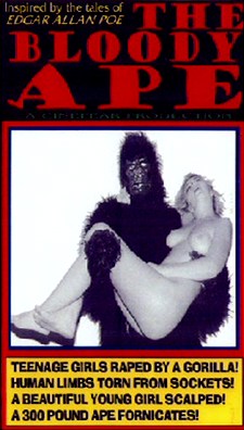 Which reminds me of "The Bloody Ape." The movie credits Edgar Allen Poe's "Murders in the Rue Morgue" as source material, which makes sense because as we all know, Poe was famous for all the stories he wrote about apes grabbing the tits of chubby Long Island bartenders.
