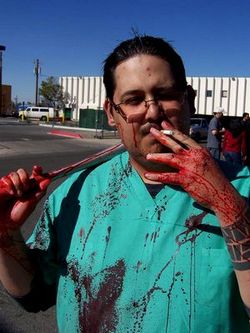 So in the last issue I told you all about "Necroville", a snazzy little flick about love, life, and a slightly effeminate vampire. It co-stars and was co-writen by two fine gentlemen by the names of Billy Garberina and Adam Jarmon Brown, a man who won't be limited to just two names. Last issue Mr. Garberina was kind enough to play 20 Questions with us, this issue we got Mr. Brown.
