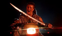 It's quintessential 80's horror: garish, distasteful, and set to a tacky soundtrack of synthesizers, drum machines and stadium cock-rock. Now that's fun, in any language. And that sense of fun barely lets up, not even when the action cuts with annoying regularity to the city outside, following a bunch of joyriding punks who snort cocaine out of, erm, a Coke can while listening to Go West and Billy Idol (yeah, now that's anarchy...). It's an utterly irrelevant subplot that doesn't go anywhere and only serves to pad the running time out, but what the hell. You'll forget all about it once the deliriously batshit final act commences, in which a helicopter drops in, and we learn to our delight that the motorcycle and samurai sword are not just decorative. It's all paving the way to a wonderfully bleak apocalyptic conclusion, and a nice little shock ending that I'm happy to admit caught me unawares.