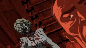There is a freedom in animation to utilize blood spatter and dismemberment with greater effectiveness than live action for the simple fact that what cannot be made realistic with actors can be made fantastical with animation. You know, even more clearly than with live action, that this can't possibly be real but that doesn't stop the shudder of disgust and horror when you witness a woman cutting herself with a razor blade over and over again. Or a mans head slowly severed in two so that you see the brain pan savagely split open and pulpy brain matter, along with blood, slosh down his body like so much rotten cantaloupe. Just writing about it makes me queasy.