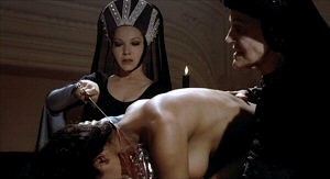 Anyway, it transpires that said lycanthrope is a young man belongs to the very gypsy witch-cult who cursed our hero’s family line all those generations ago. To exact their revenge, they hold a ritual at which one of their number, Ilona, gives it up for Satan himself – who appears complete with slinky skin-tight black outfit – and sets out to ensnare Waldemar and ensure he’s cursed forever. Wait a minute, I thought the Daninsky family line was already cursed for eternity at the start of the movie? Oh, whatever.